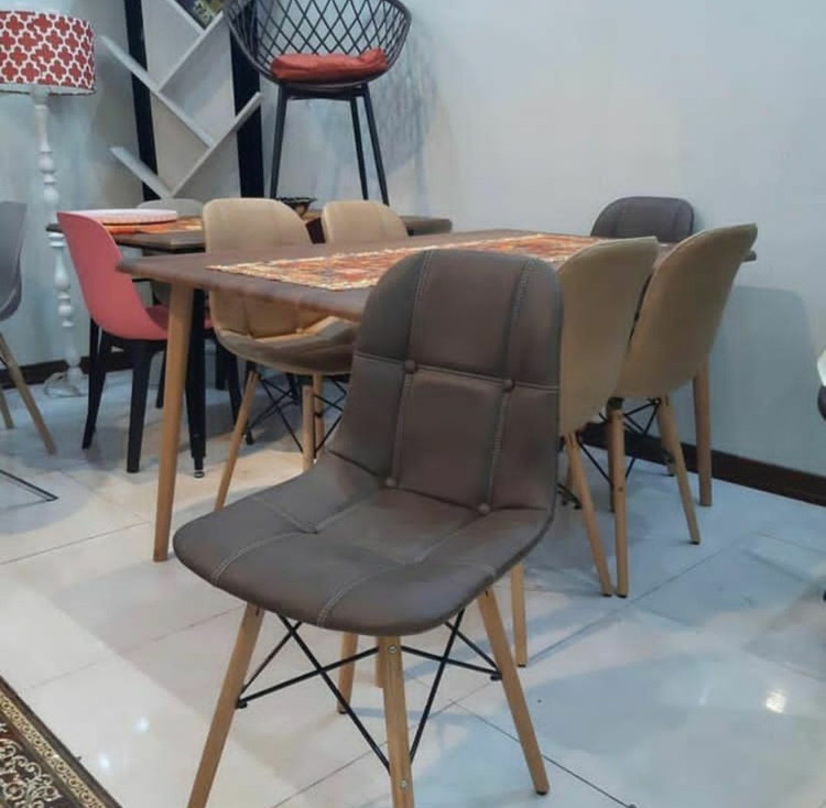 صندلی اریا لمسه در رنگبندی متنوع بر اساس کالیته رنگ پارچه مازارتی، پایه ایفلی چوب توسکا. قابلیت تحمل بالا