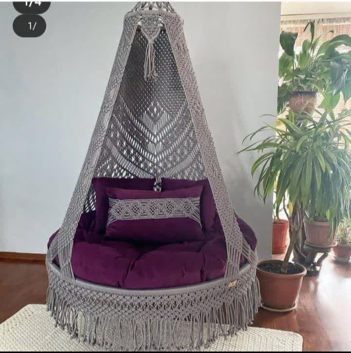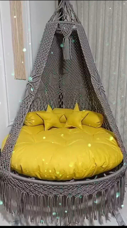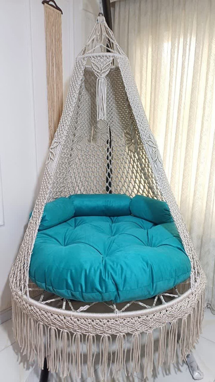 مشتری عزیز تاب ریلکسی دو نفره عربی مکرومه که مشاهده میفرمایید ، مکرومه آن از بهترین نخ والیاف بافته شده است. نخ پلی استر مغزدار شرکت جهان آسا که برخلاف برخی از کارهای بازاری مقاومت بالایی جهت تحمل وزن دارد و تا 180 کیلوگرم را تحمل میکند بدون اینکه به مرور زمان از شکل و ظاهر اولیه خود بیفتد.